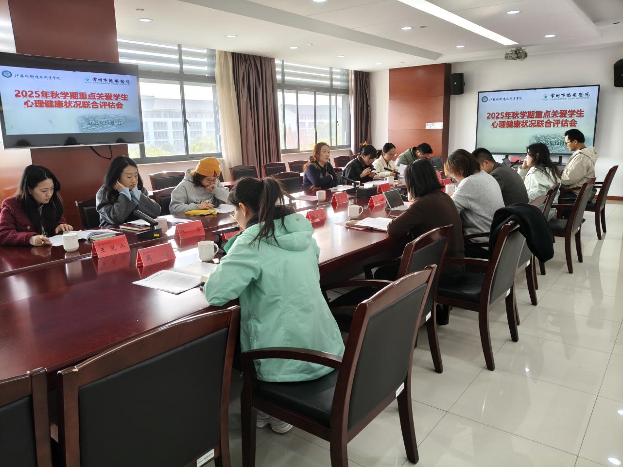 为持续提升学生心理健康教育工作的专业化、规范化水平,健全心理问题早期发现、精准预防与科学干预机制,强化重点关爱学生心理预警与帮扶实效,全面夯实心理育人工作基础,12月1日,学生工作处组织召开2025年秋学期重点关爱学生心理健康状况联合评估会。学生工作处处长刘波、学工处相关领导老师及各二级学院党总支副书记、心理辅导员,专兼职心理教师、班主任代表参加会议,常州市德安医院心理科门诊副主任高婷叶受邀参会。